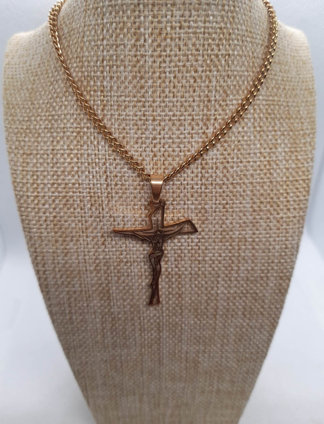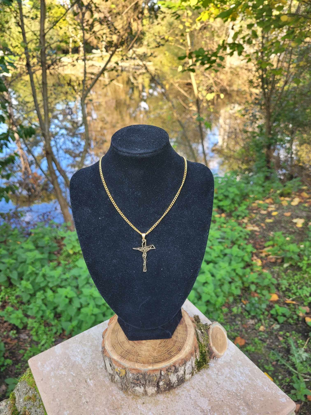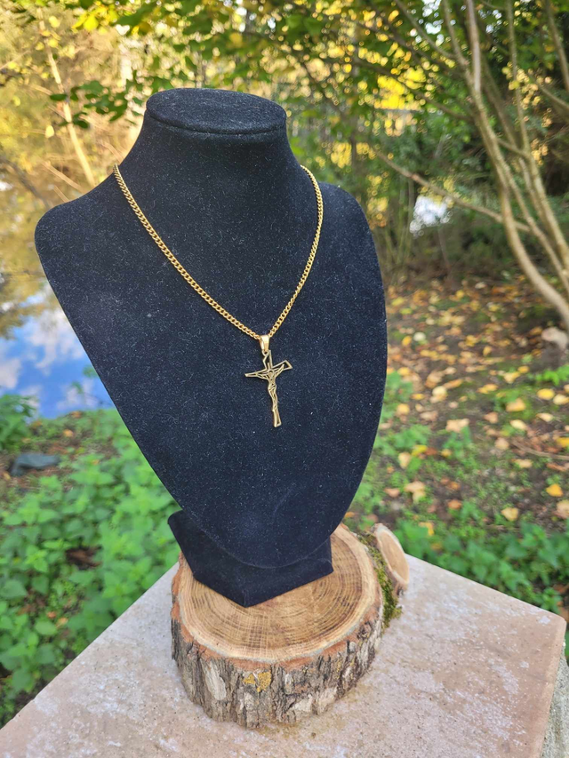 Pendentif croix en acier inoxydable or avec chaine de 60cm en acier inoxydable.